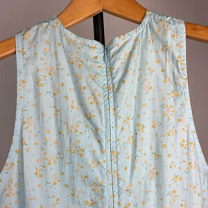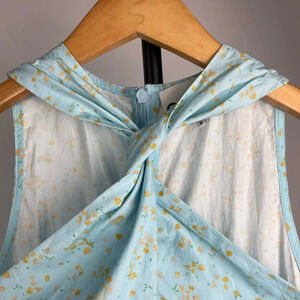 Ganni Blue Floral Printed Cotton Poplin Sleeveless Twist-Front Midi Dress