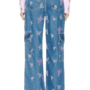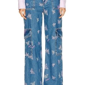 Ganni Blue Straight Leg Jeans with Butterfly Design