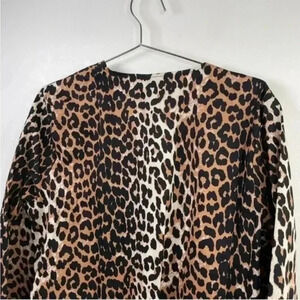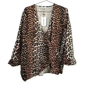 Ganni Brown And Black Leopard Print Wrap Blouse With Ruffle Bell Sleeves