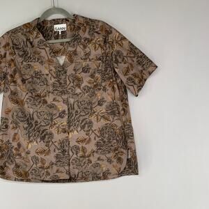 Ganni Brown Floral Short Sleeve Tee