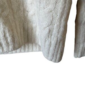 Ganni Cable Knit Keyhole Alpaca Blend Sweater Mock Neck Cut Out Zip Up Ivory