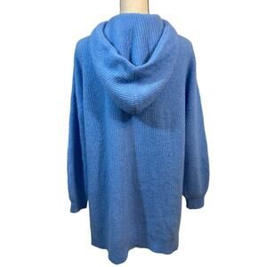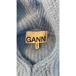 Ganni Callahan Alpaca and Wool Ribbed Knit Hooded Blue Pullover Sweater