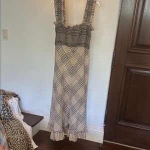 Chic Ganni dress with checkered pattern. Features ruffle detailing. Ideal for casual wear.