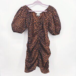 Ganni Cheetah Printed U-neck Ruched Mini Dress EU 40