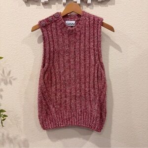 Ganni Chucky Glitter Knitted Sleeveless Knit Sweater Vest Top Pink Nectar NWT M