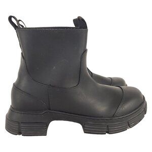 Ganni City Recycled Rubber Ankle Boots Size 38 US 8 Black $295