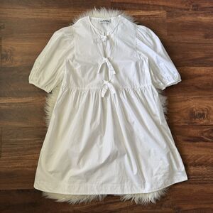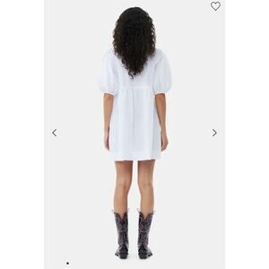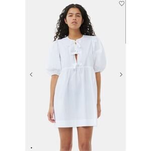 Ganni Cotton Poplin Tie String Mini Dress in Bright White US 0