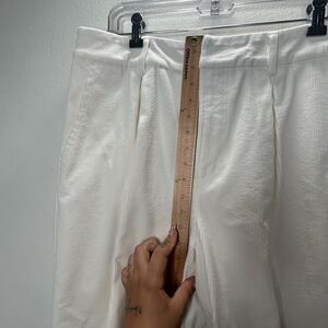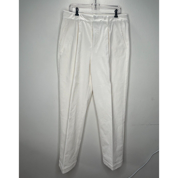Ganni Cream Pleated Front Crease High Waist Corduroy Zip Trouser Pants 42