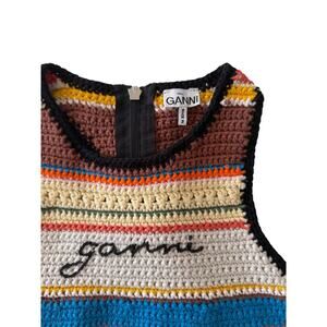 Ganni Crochet Racerback Logo Bikini Top Zip Back Crop