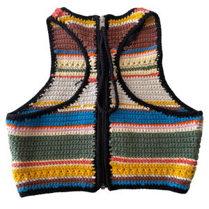 Ganni Crochet Racerback Logo Bikini Top Zip Back Crop Size 32 (0 XS)