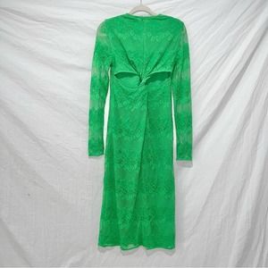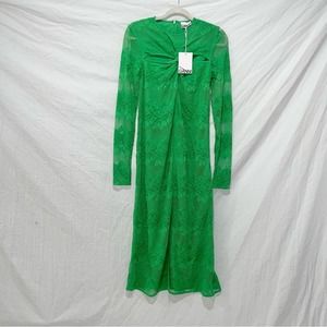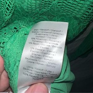 Allover floral lace blend fabric with stretch Lined throughout body with completely sheer sleeves