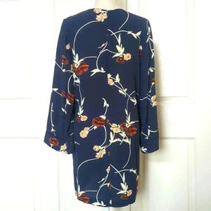 The Ganni Dalton Crepe Shift Dress in Total Eclipse. Slightly boat neck. Wide sleeves. Round hems. 100% Viscose