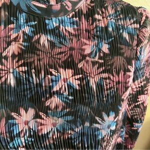 Ganni Georgette Midi Dress, floral purple and blue pattern, lined. Cinched wrists with flutter detail, neck detail as well. Button back closure. No zipper. Worn only once and dry cleaned. Size 6 US/38 EU