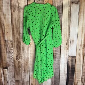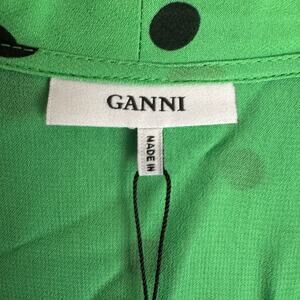 Ganni Dress Dainty Georgette Wrap Polka Dot Classic Green Size 42 Versatile