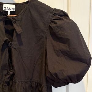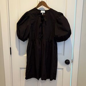 Stylish black dress with tie-front detail and puff sleeves. Ideal for versatile