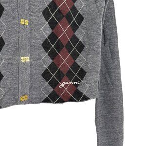 Grey (100% Merino Wool). Knits. V-Neck. Long Sleeve. Front button closure.