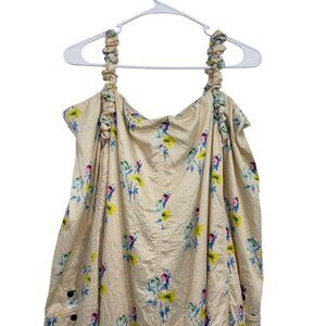 Ganni Floral Crinkled Satin Off-Shoulder Slit Maxi Dress Bell Sleeves Size 36
