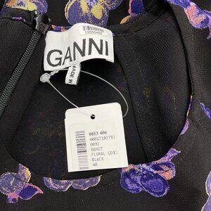 This Ganni dress is tailored for those who appreciate elegance in simplicity. The black floral georgette fabric exudes sophistication, while the long puffed gathered sleeves add a touch of modern style. Ideal for professional settings or refined gatherings, this dress offers both comfort and a polished appearance.
