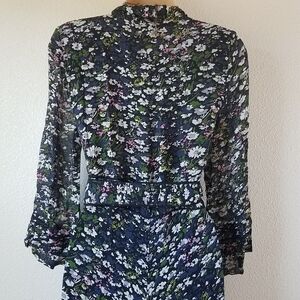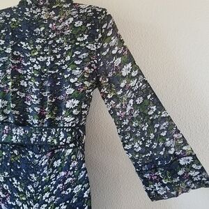 NWT, Ganni Floral high low midi wrap dress, sheer sleeves, lined, Size 34, which is equivalent to a US 2.