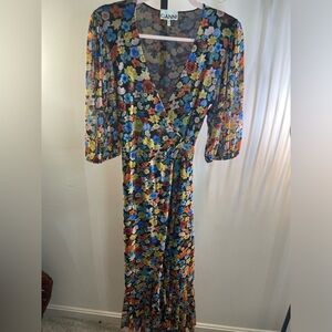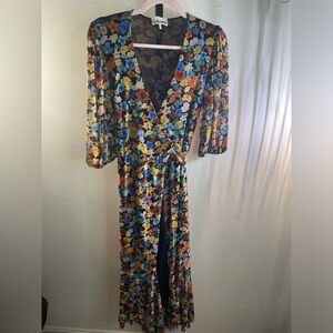 GANNI|| Floral Print Mesh Midi Wrap Dress, Size 38 (medium) worn once