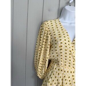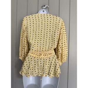 Ganni Floral Print Wrap Blouse Top Maize Yellow Long Sleeve Summer Peplum 34