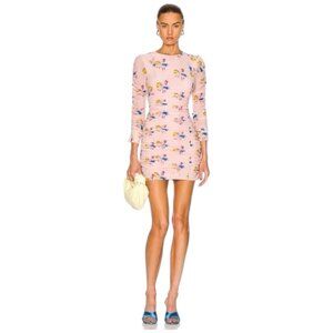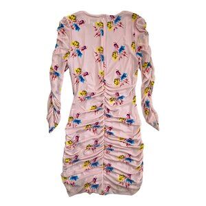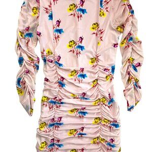 Ganni Floral Ruched Long Sleeve Stretch Mesh Bodycon Mini Dress Pink EU 36 US 4