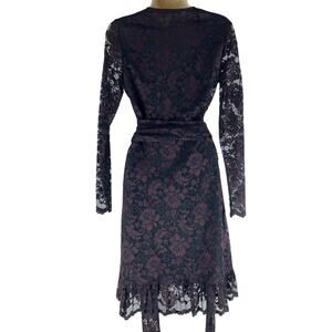 Ganni Flynn Lace Ruffle Wrap Dress Burgundy Black Size 2