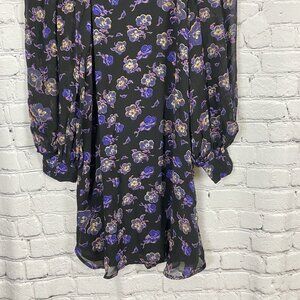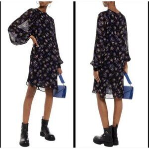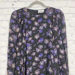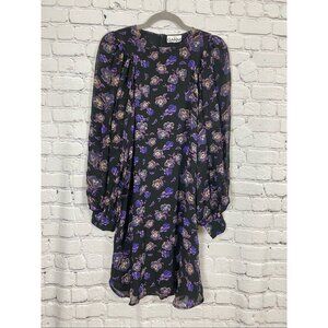 Ganni Georgette Gathered Floral Print Mini Dress Long Sleeve Purple Ganni Size 34 US 2 Women.