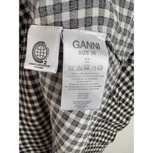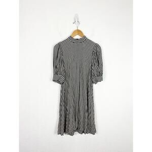Ganni Gingham Mini Dress Size 36 Black White Crepe Puff Sleeve Lightweight
