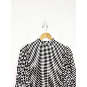 $190 Ganni Gingham Mini Dress Size 36 Black White Crepe Puff Sleeve