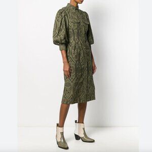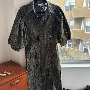 Shirt dress Broderie anglaise cotton Gathered sleeves Buttoned cuffs Breast pockets Button fastenings through front Non-stretchy fabric Mid-weight fabric Machine wash Imported