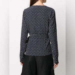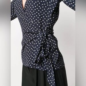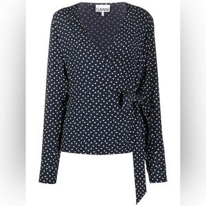 Ganni Heart Printed Crepe Wrap Blouse Top Size 32 NWT