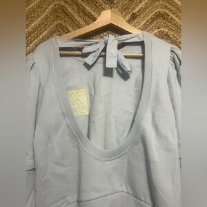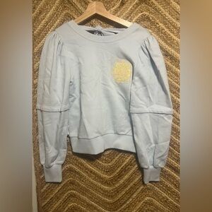 Ganni Isoli Puff-Sleeve Love Club Sweatshirt,Open Back,Blue,Size XS