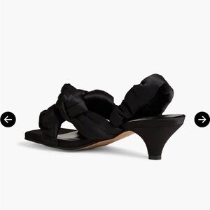 Ganni Knotted Satin Slingback Sandals Kitten Heels Open Toe Puffy Black Size 6