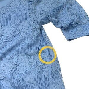 Ganni Lace Mini Dress 38 Placid Blue 3/4 Sleeve Zipper Front Shift MISSING BELT