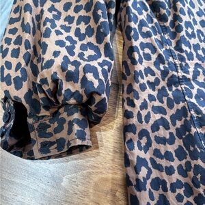 Stylish midi dress with bold leopard print. Features puff sleeves and a statement collar. Perfect for any occasion.
