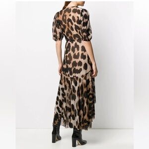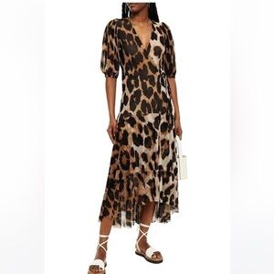 Wrap maxi dress in printed mesh, featuring a flouncy curved tulip hemline and elbow-length elasticated balloon sleeves.