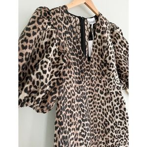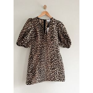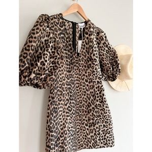 Chic mini dress with bold leopard print. Features puff sleeves and a flattering silhouette. Perfect for a stylish statement.NWT never wore