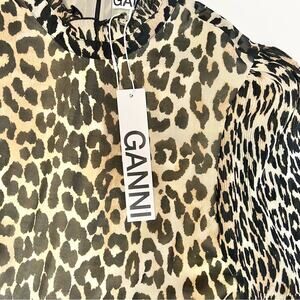 NWT Ganni Leopard Print Pleated Bell Sleeve Crop Blouse