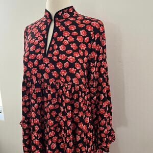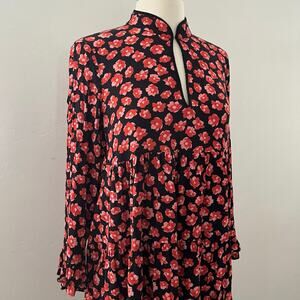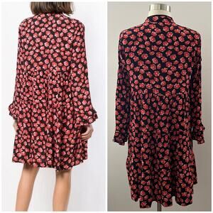Ganni Lindale Floral Crepe Mini Dress Mod Retro Ruffle Black Size 38 = US Size 6