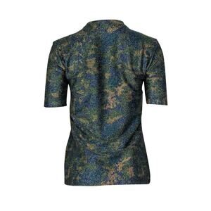 Ganni Lurex Metallic Camo Top Calamata size 34 camo military mesh
