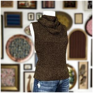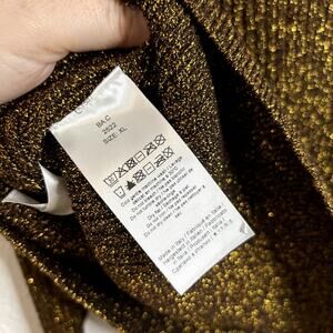 Ganni Metallic Rib Knit Tie Back Top Womens Size XL Gold Black NWT Retail $ 225