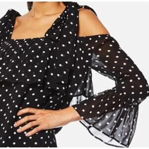 Ganni Monette Cold-shoulder Polka-dot Georgette Dress In Black. Size 36/ US 4