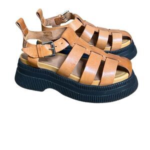 Ganni NWOT Creepers Leather Fisherman Strappy Platform Sandals Size 37