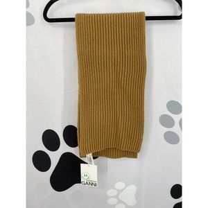 Ganni NWT Rib Knit Scarf Recycled Wool Ribbed Half Size Tan One Size New