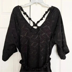 Ganni Naia Jacquard Black Floral Wide Sleeve Cross Back Midi Dress Size 6