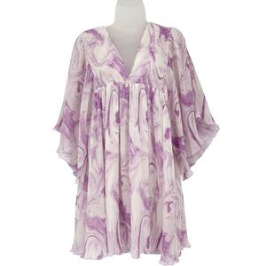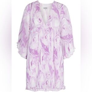 Ganni Orchid Bloom Pleated Georgette Oversized Mini Dress Designer XXS / XS