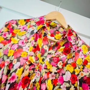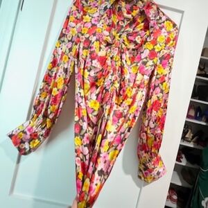 Beautiful Oganic silk floral mini dress with so many details. 70's long collar, ruching at the bustline (can be ununbottoned or buttoned up), blousy sleeves. Matierial is gorgeous and perfect for day-to-night, summer or holiday parties. Gorgeous. NWT. Size 36. Fits US 4 or 6.
