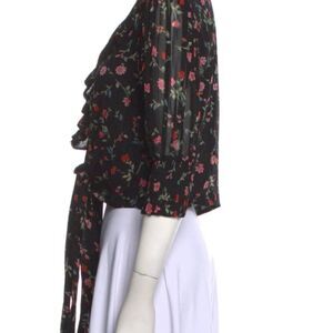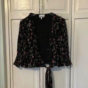Ganni Paradise Elm Black Floral Cropped wrap blouse - SIze M