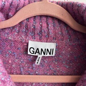 Ganni Pink Ribbed Alpaca Blend High Neck Cardigan Size XS